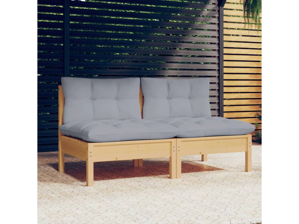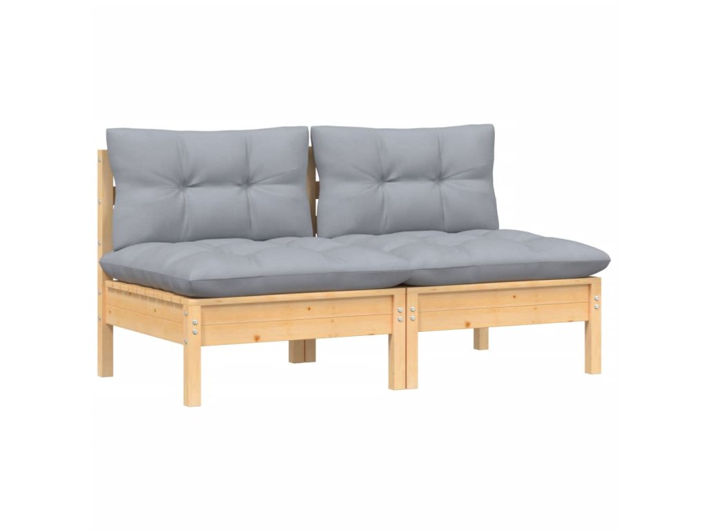 2místná zahradní pohovka s šedými poduškami masivní borovice 3095991