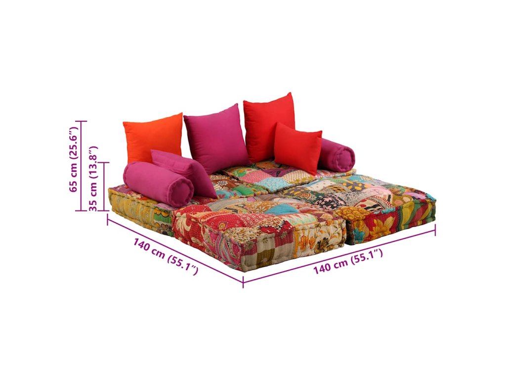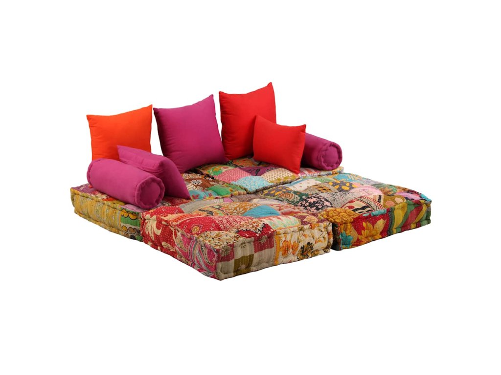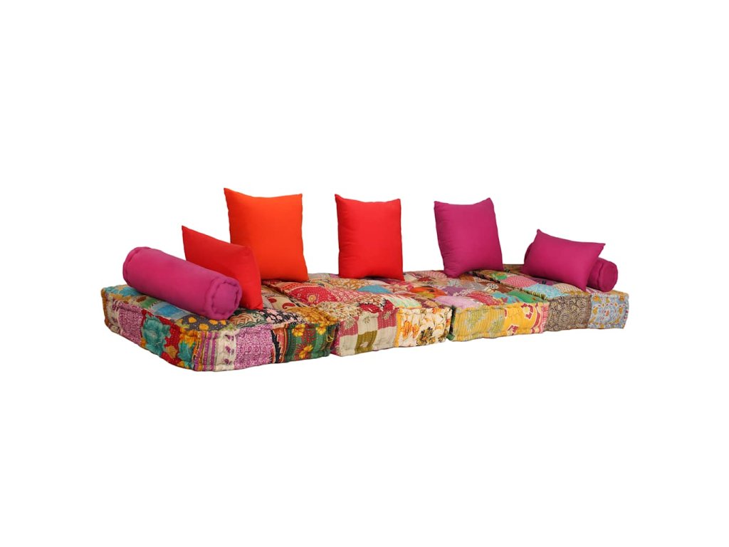 Tato všestranná pohovka disponuje modulovým designem. Jednotlivé modulární díly můžete snadno kombinovat v různých konfiguracích a přeměnit je na pohovku, postel či sedací poufy — podle toho, čemu právě dáváte přednost! Je ideální pro rodinné filmové večery nebo když si vaše děti pozvou kamarády na hraní videoher. Můžete ji však použít i na terase, chcete-li si užívat pěkného počasí. Díky čalounění z bavlněné látky a silnému polstrování je pohovka měkká a pohodlná. Výrazné polštáře vaše pohodlí ještě umocní, a navíc jsou skvělým dekorativním doplňkem.