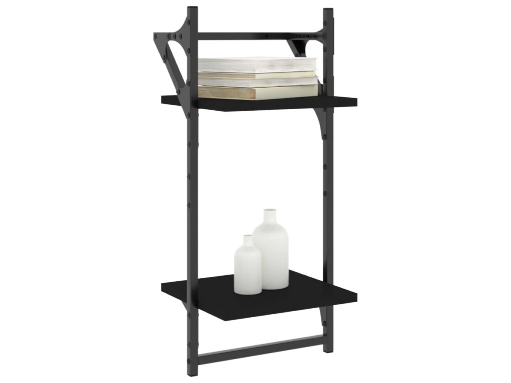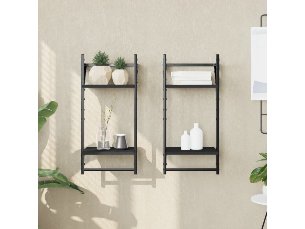 2patrové nástěnné police s tyčemi 2 ks černé 30 x 25 x 65 cm 836253