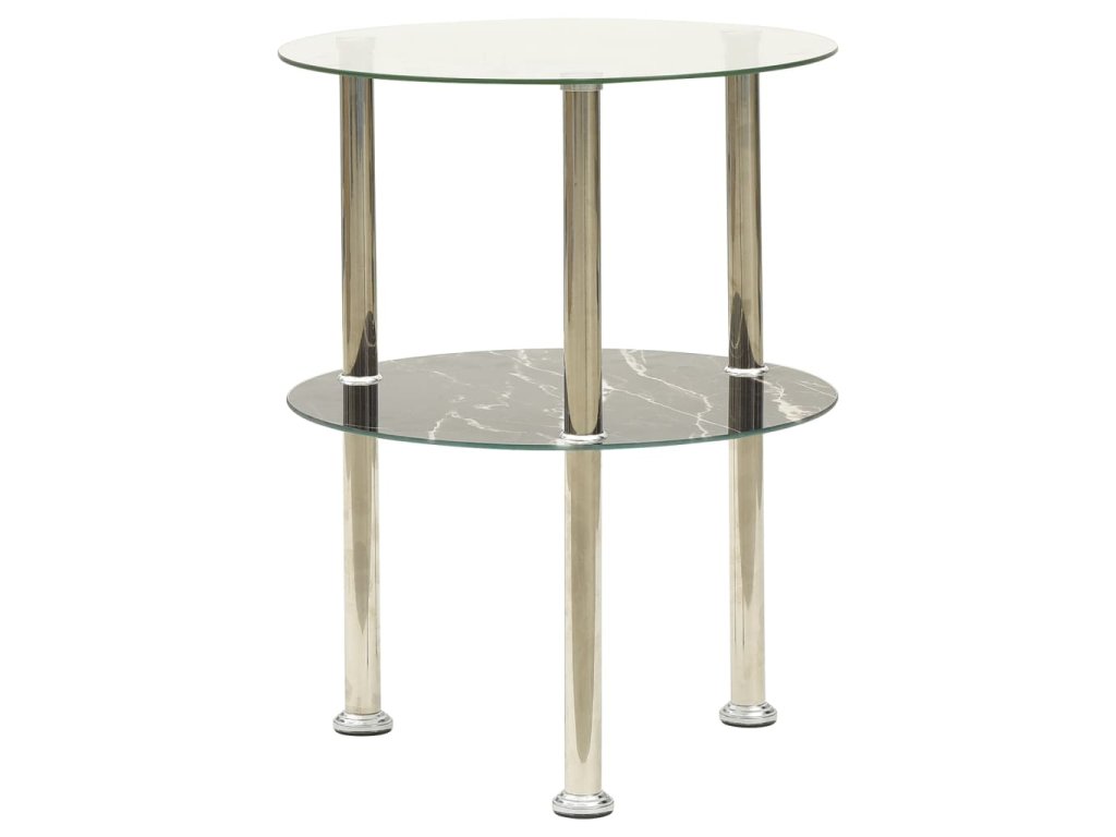 322789 vidaXL 2-Tier Side Table Transparent & Black 38 cm Tempered Glass 322789