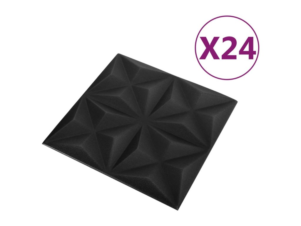 3D nástěnné panely 24 ks 50 x 50 cm origami černé 6 m² 150917