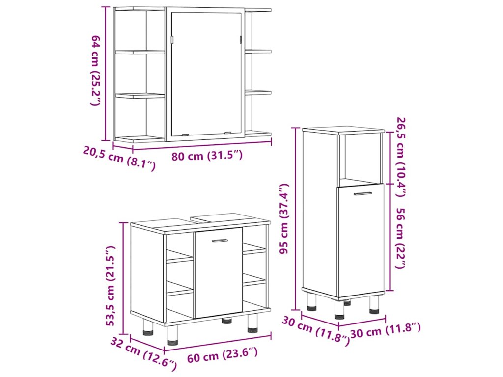 - Rozměry koupelnové skříňky (1): 30 x 30 x 95 cm (Š x H x V)