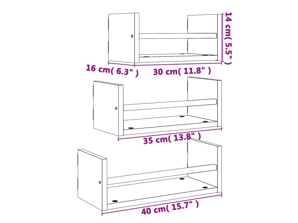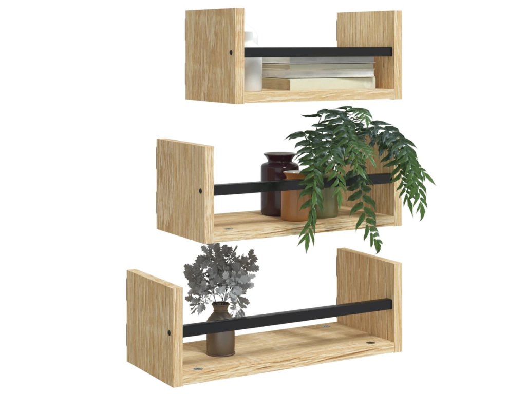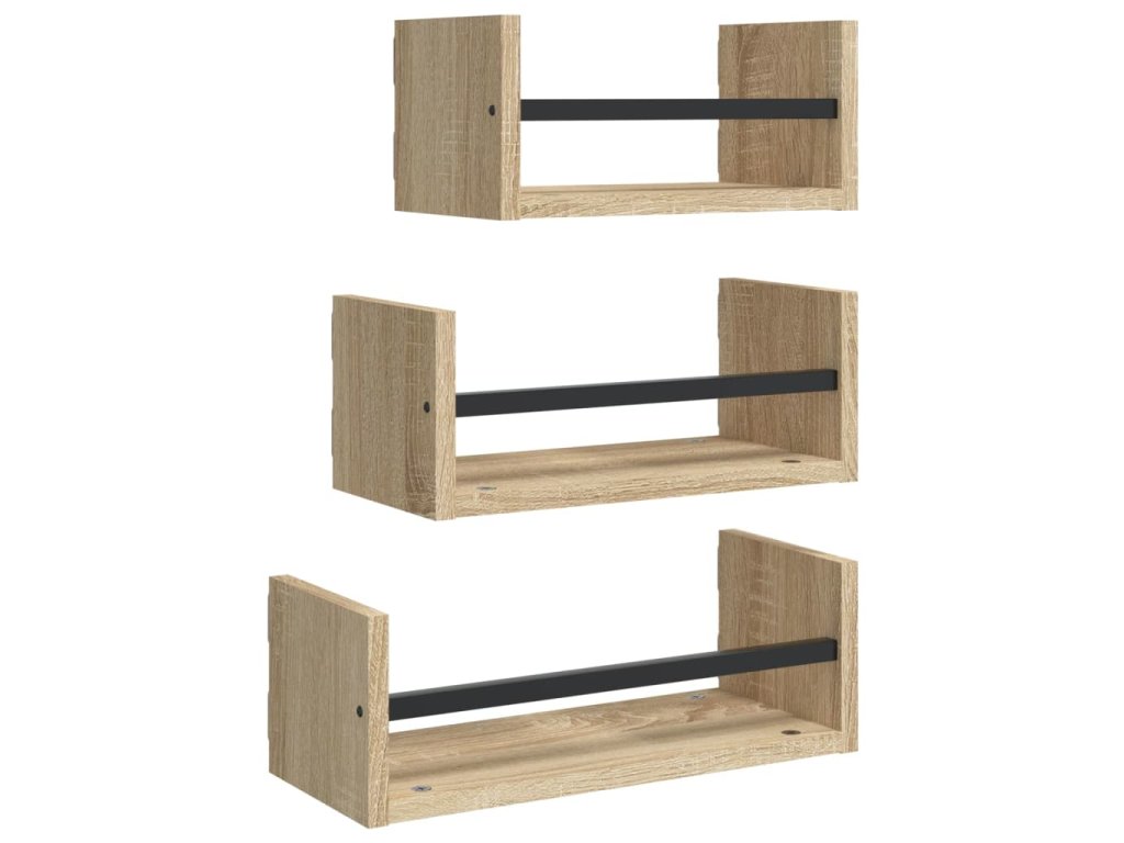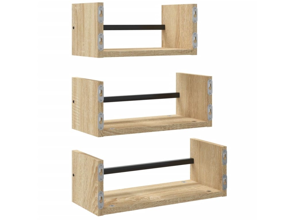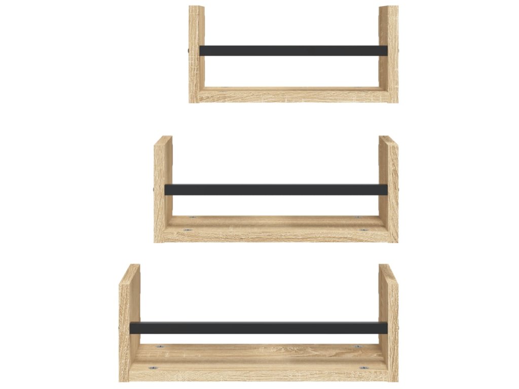 3dílná sada nástěnných polic s tyčemi, dub sonoma, konstrukční dřevo 835445