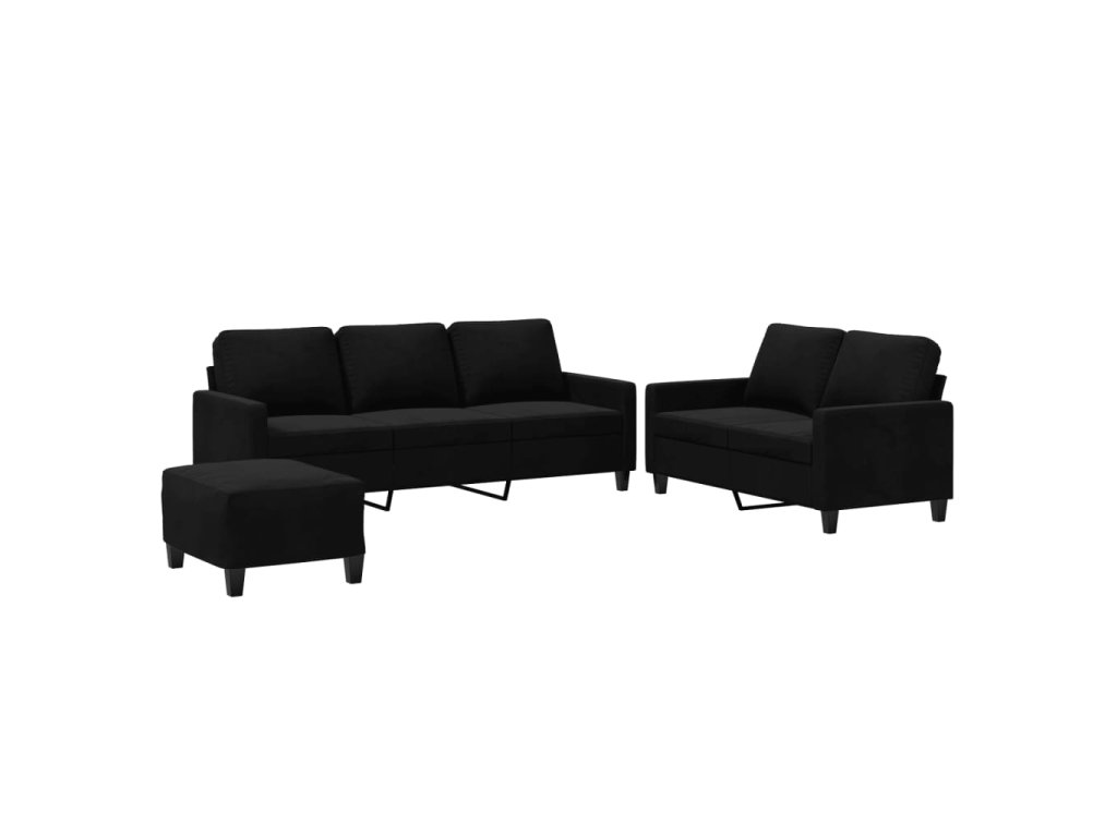 3dílná sedací souprava s poduškami černá samet 3201531