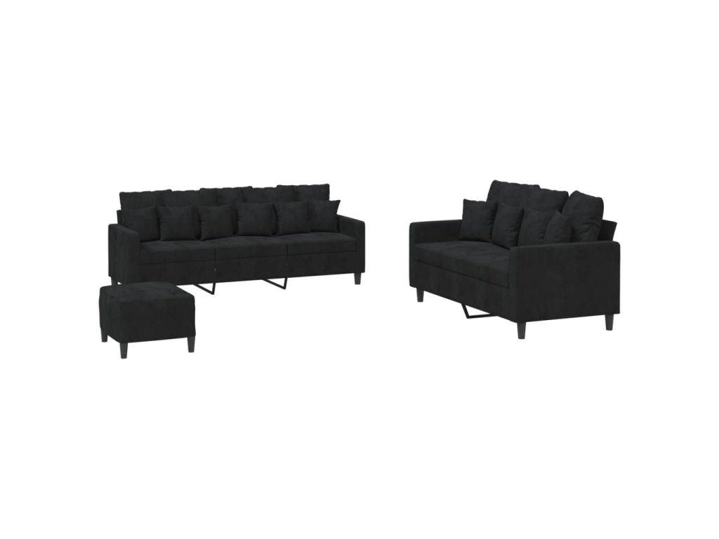 3dílná sedací souprava s poduškami černá samet 3201735