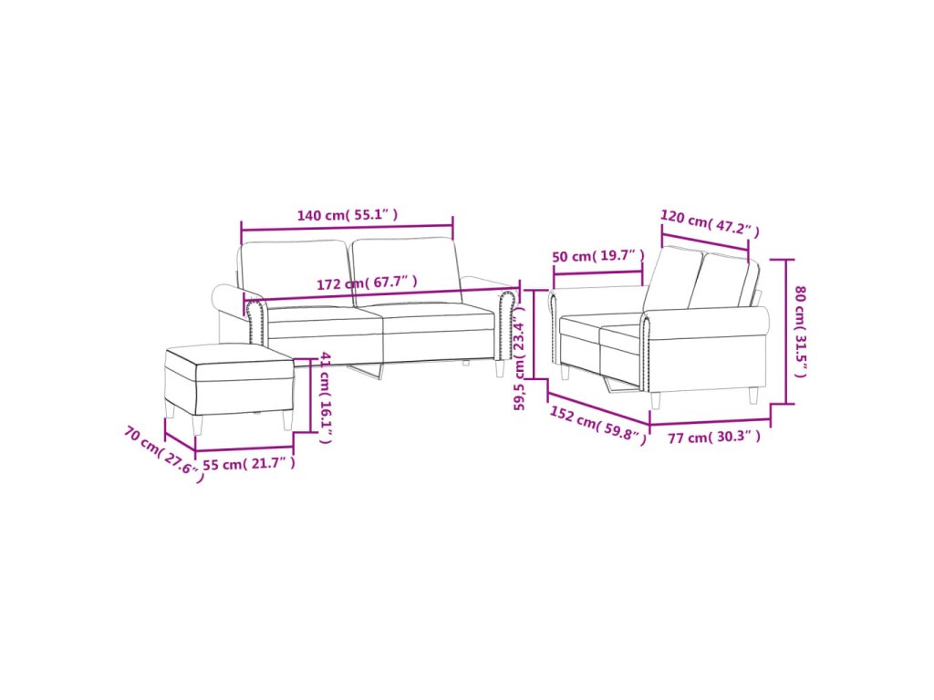 - Celkové rozměry: 172 x 77 x 80 cm (Š x H x V)