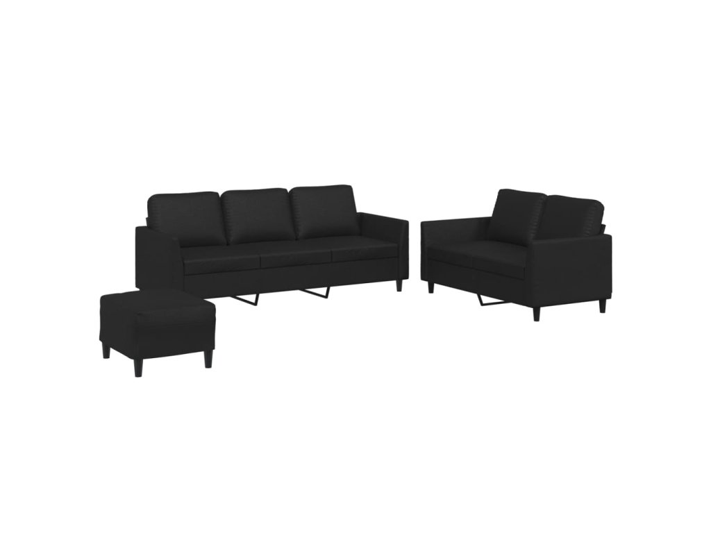 3dílná sedací souprava s poduškami černá umělá kůže 3201765