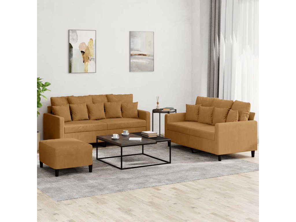 3dílná sedací souprava s poduškami hnědá samet 3201717