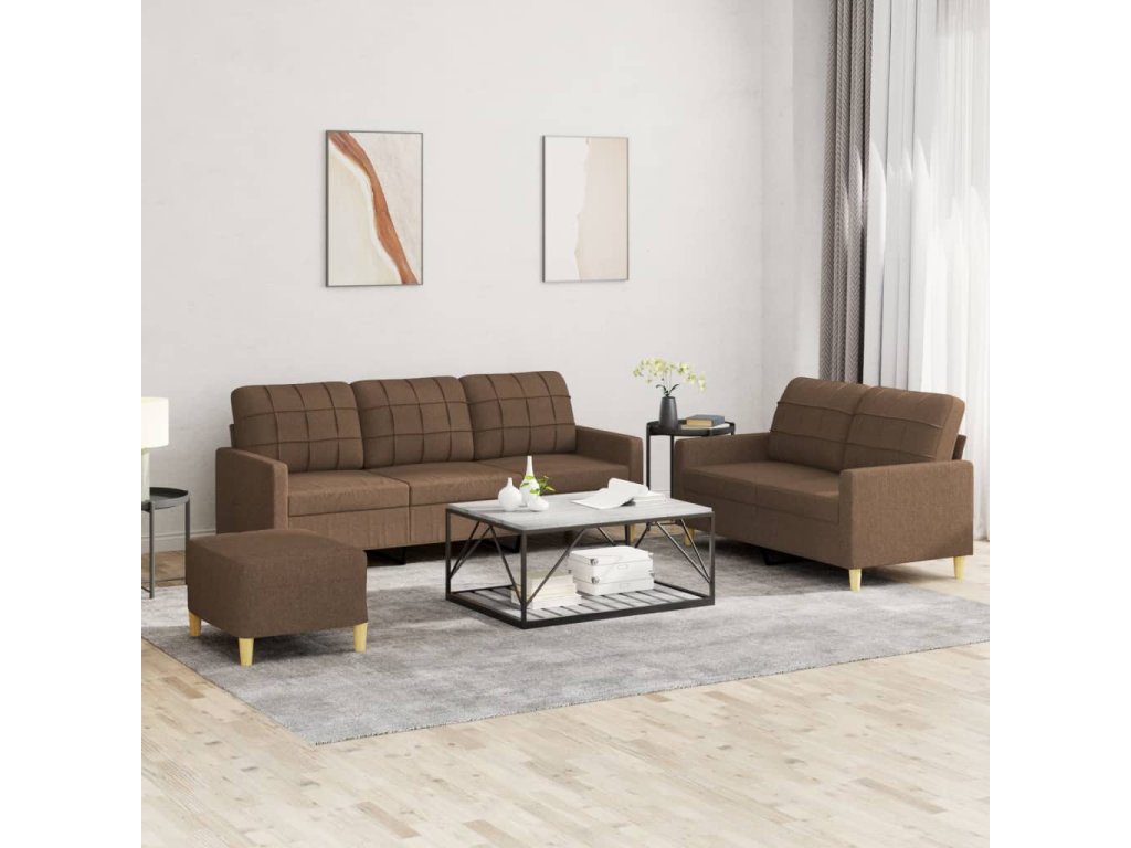 3dílná sedací souprava s poduškami hnědá textil 3201317