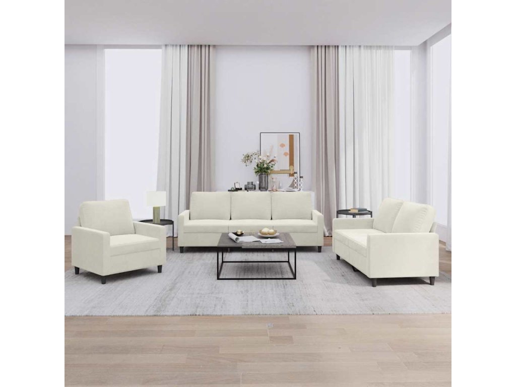 3dílná sedací souprava s poduškami krémová samet 3201484