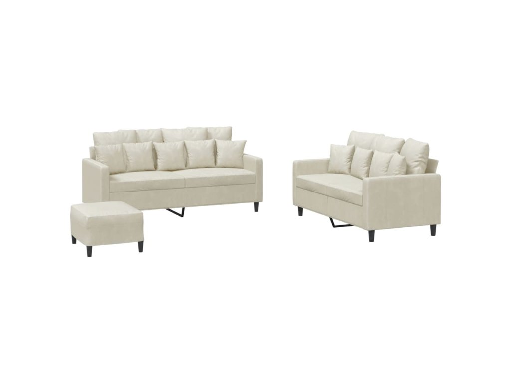 3dílná sedací souprava s poduškami krémová samet 3201718