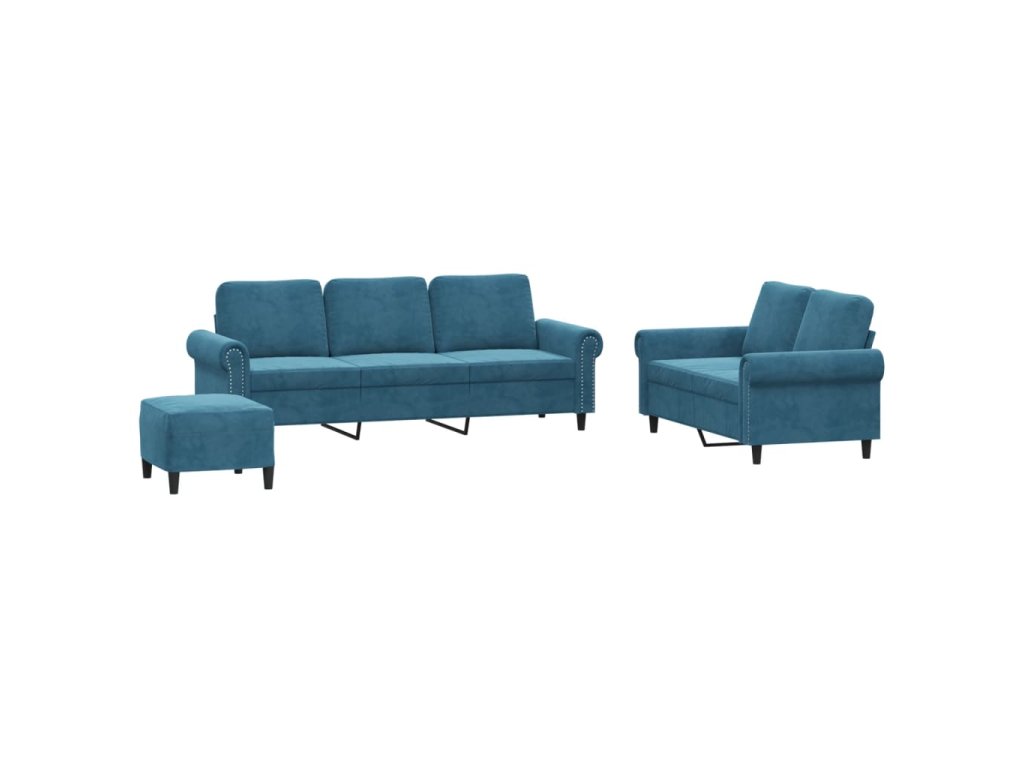 3dílná sedací souprava s poduškami modrá samet 3202269