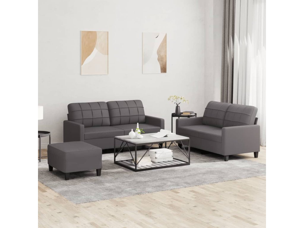 3dílná sedací souprava s poduškami šedá umělá kůže 3201365