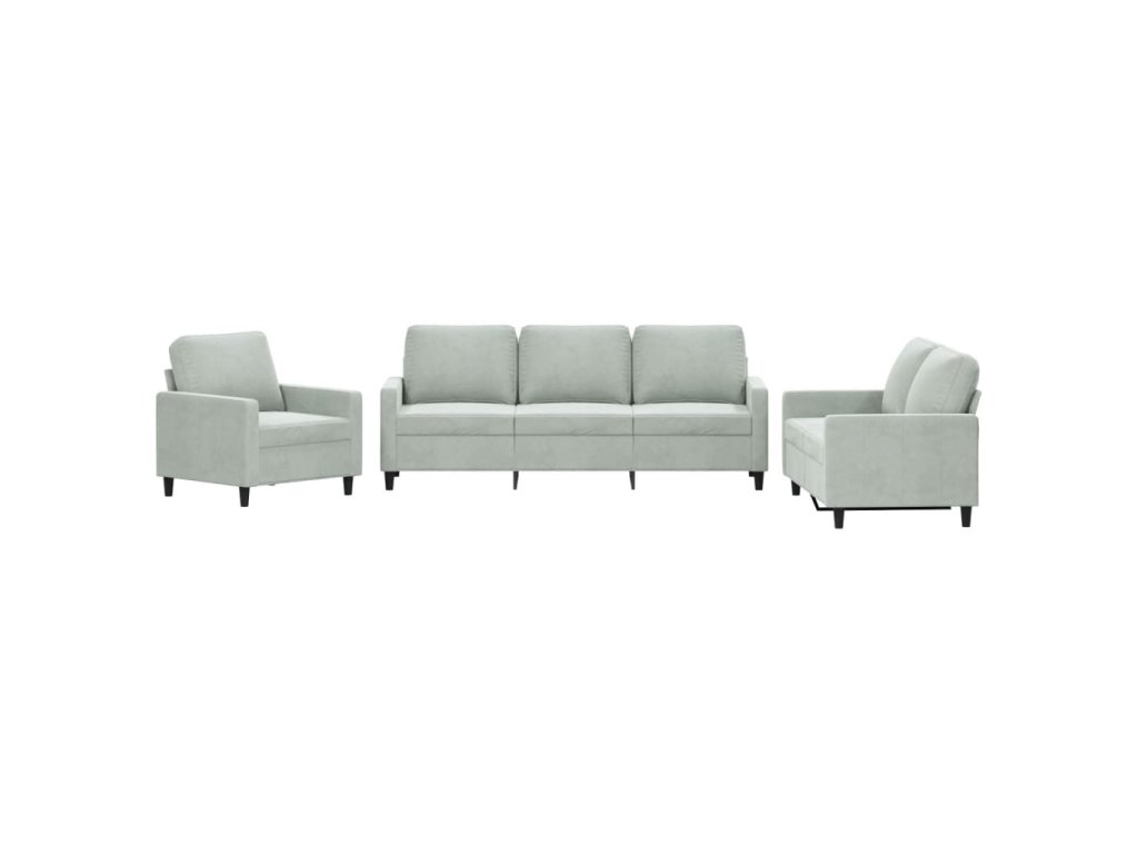 3dílná sedací souprava s poduškami světle šedá samet 3201476