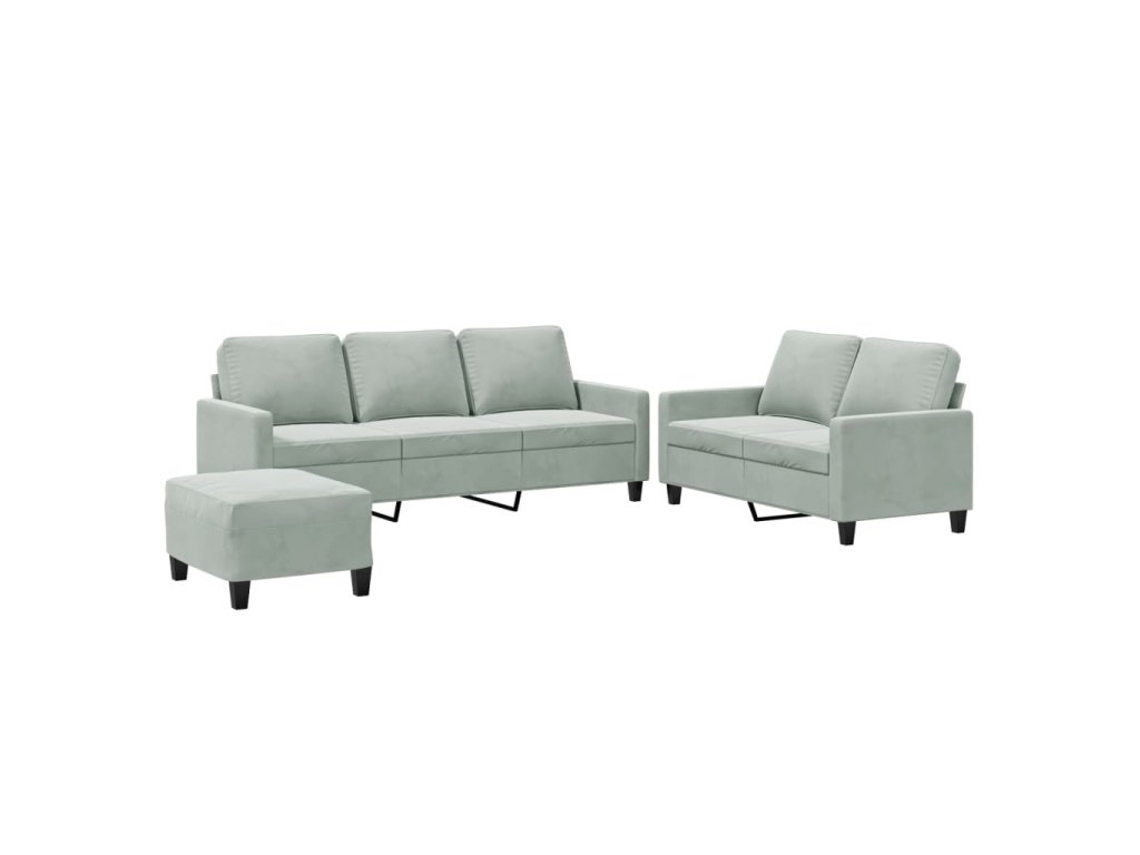 3dílná sedací souprava s poduškami světle šedá samet 3201526