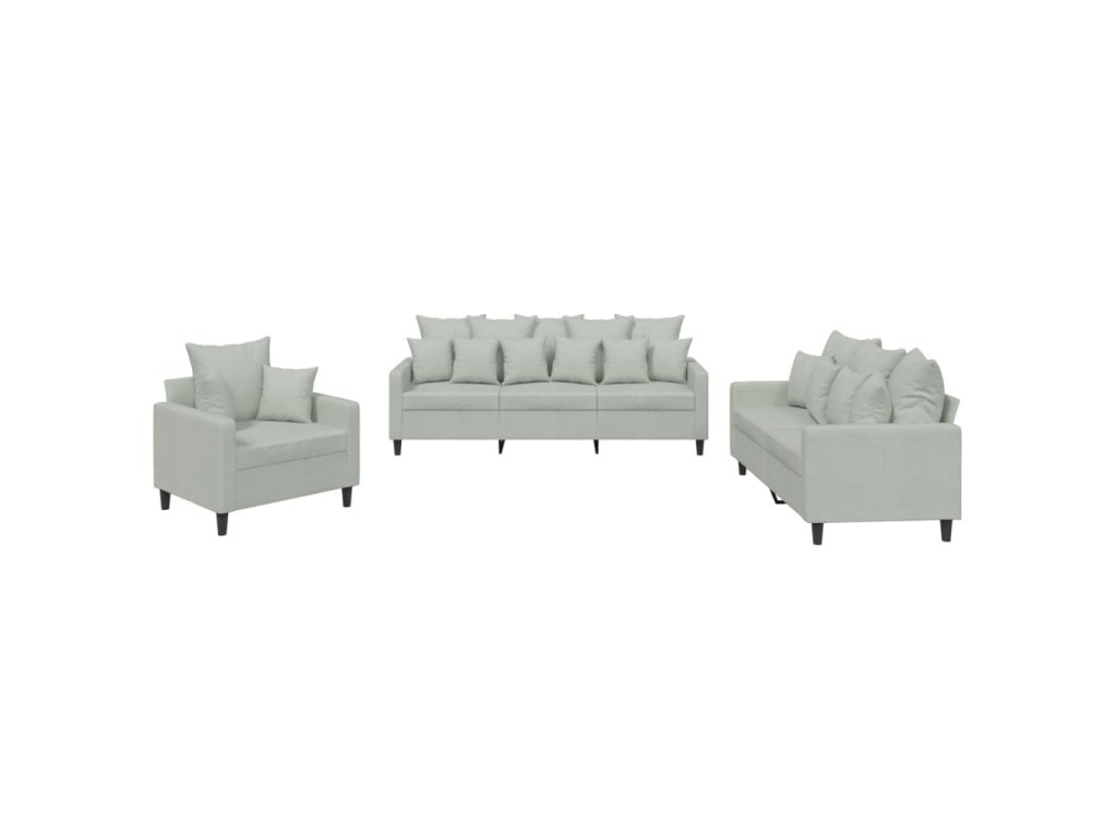 3dílná sedací souprava s poduškami světle šedá samet 3201680