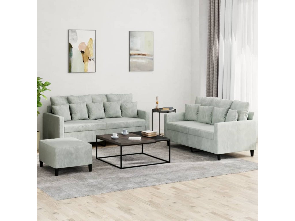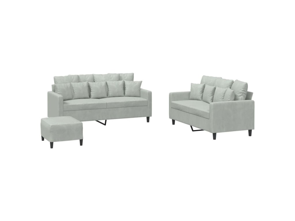 3dílná sedací souprava s poduškami světle šedá samet 3201710