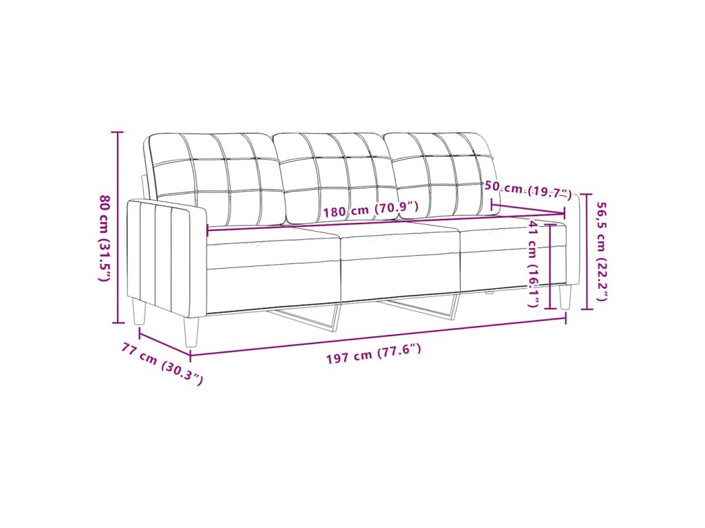- Celkové rozměry: 197 x 77 x 80 cm (Š x H x V)
