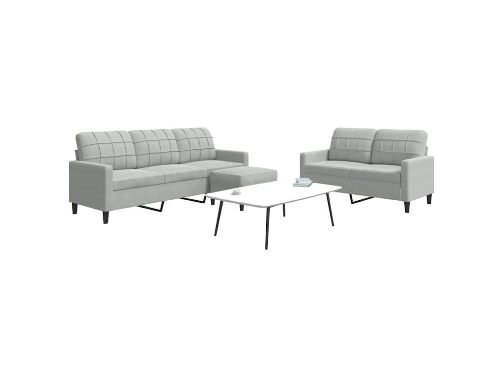 3dílná sedací souprava s poduškami světle šedá samet 3278401
