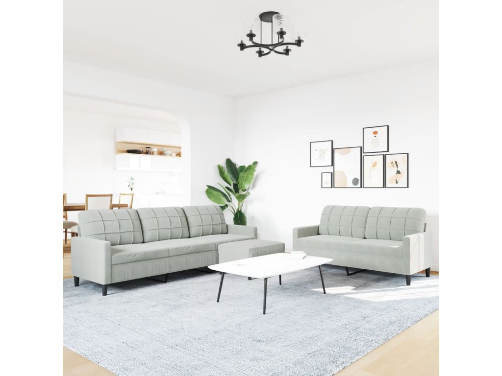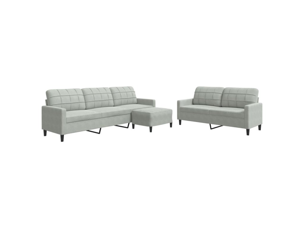 3dílná sedací souprava s poduškami světle šedá samet 3278481
