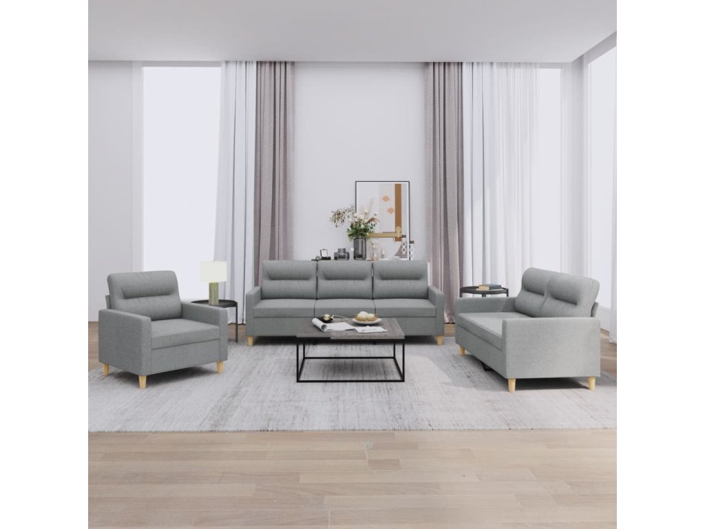 3dílná sedací souprava s poduškami světle šedá textil 3201536