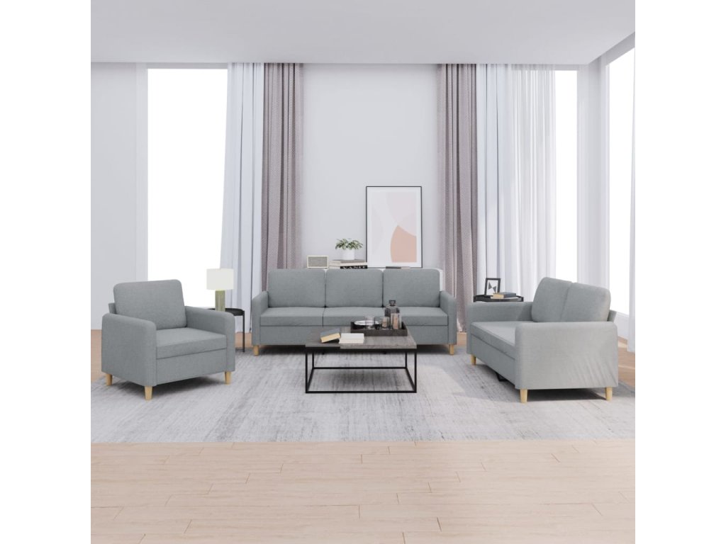 3dílná sedací souprava s poduškami světle šedá textil 3202054