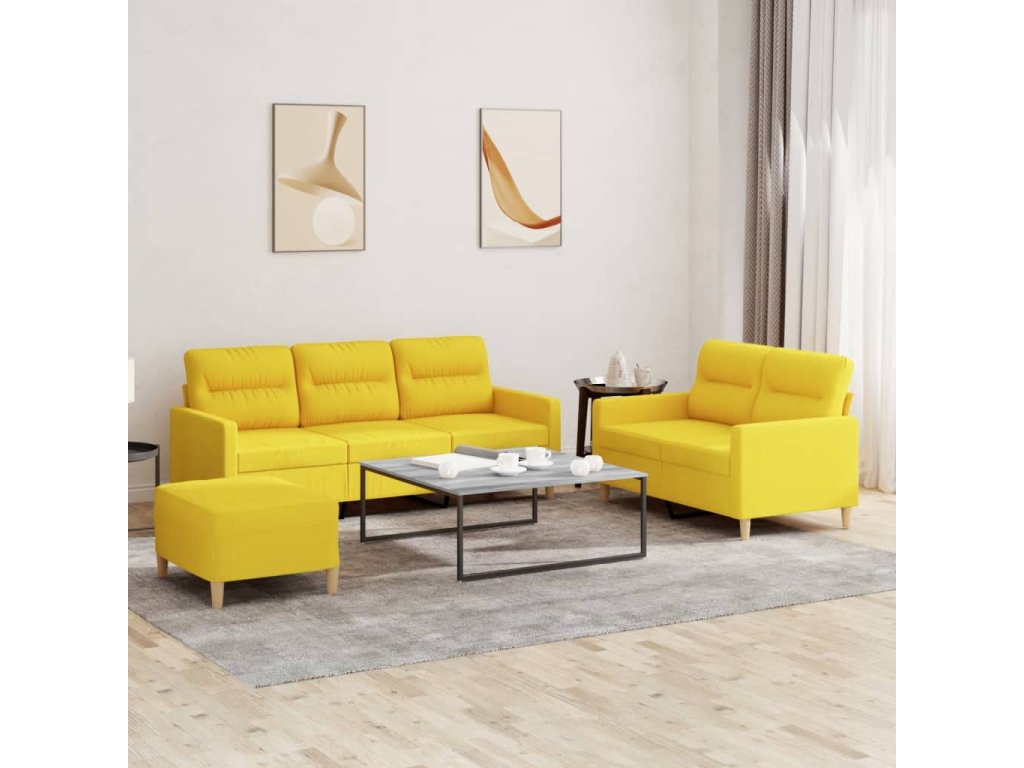 3dílná sedací souprava s poduškami světle žlutá textil 3201613