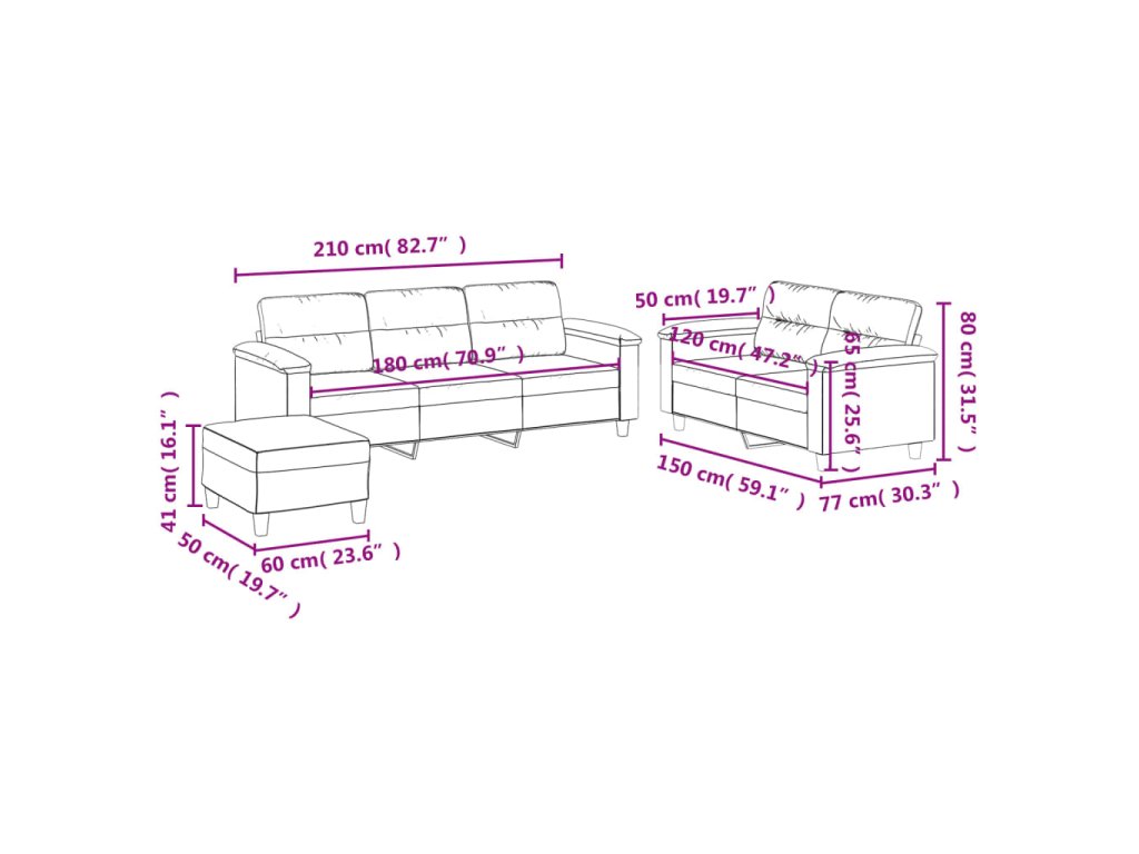 3dílná sedací souprava s poduškami tmavě šedá mikrovlákno 3202346