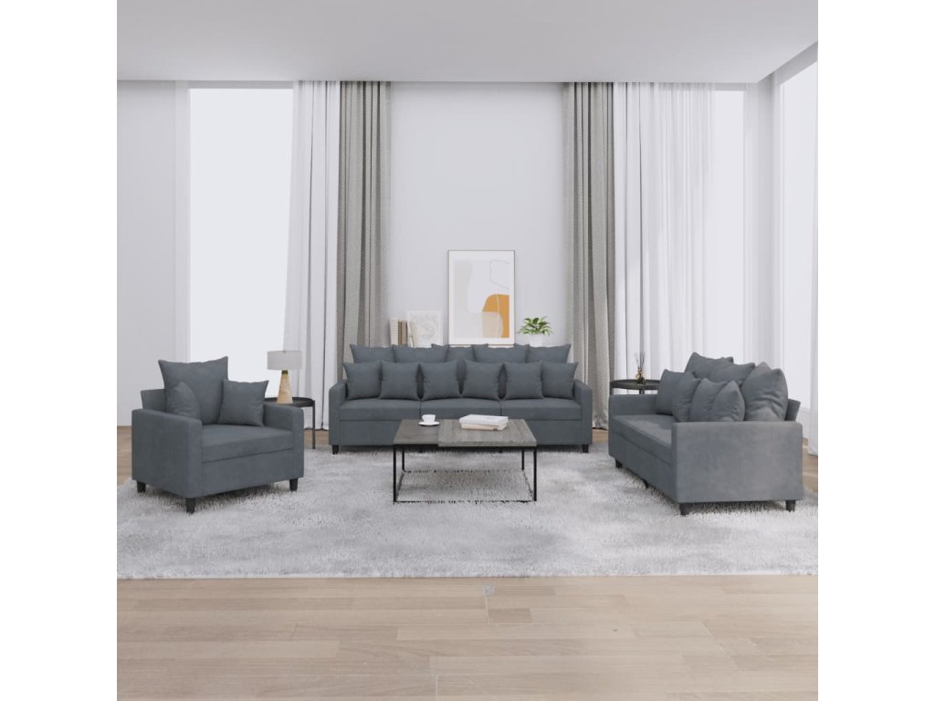 3dílná sedací souprava s poduškami tmavě šedá samet 3201681