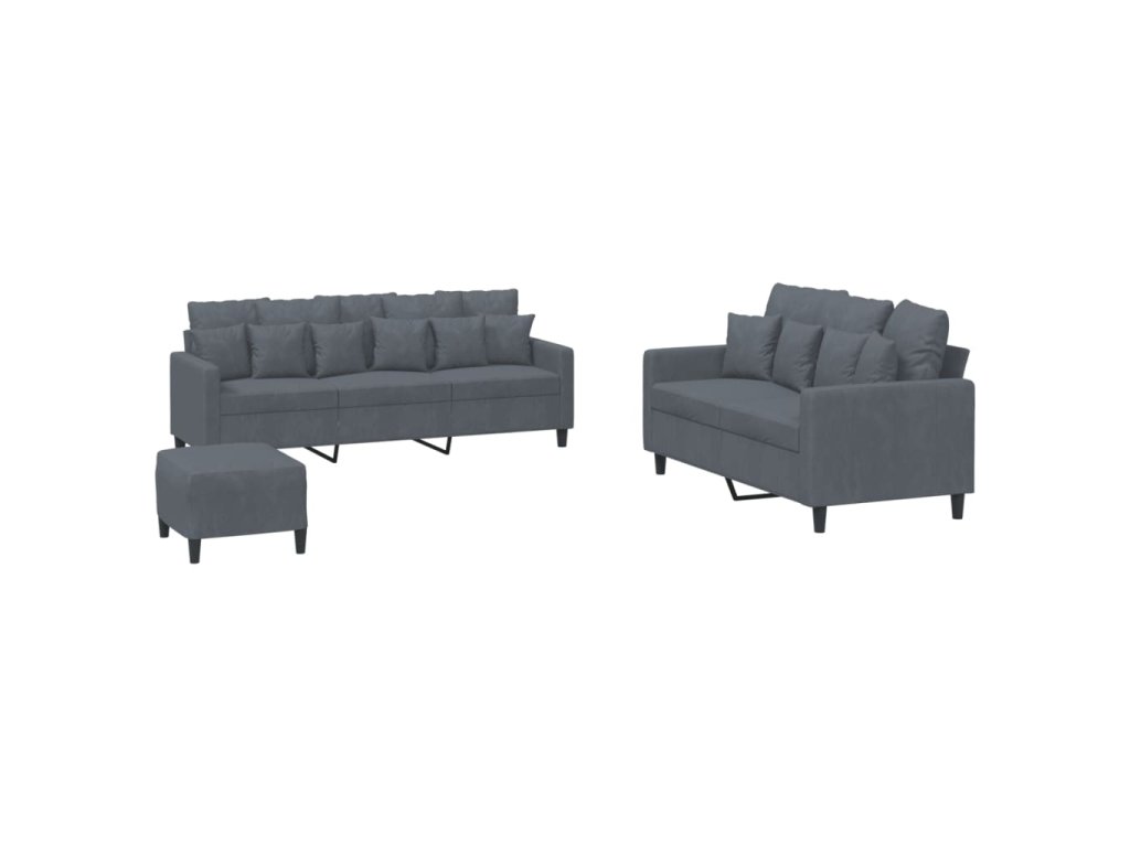 3dílná sedací souprava s poduškami tmavě šedá samet 3201731