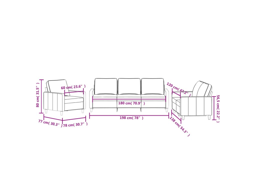 - Celkové rozměry: 198 x 77 x 80 cm (Š x H x V)