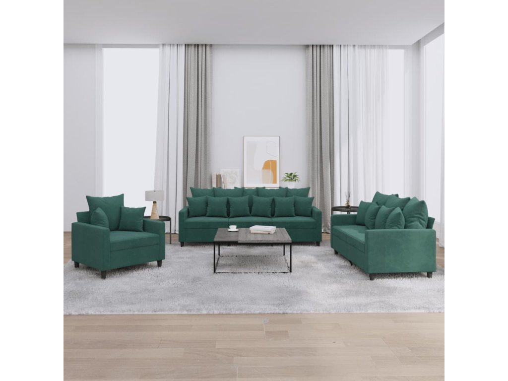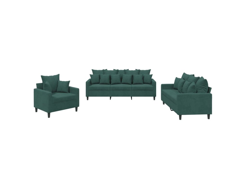 3dílná sedací souprava s poduškami tmavě zelená samet 3201682
