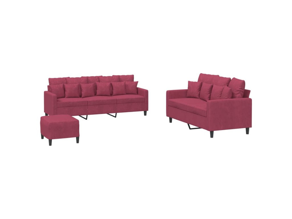 3dílná sedací souprava s poduškami vínová samet 3201734