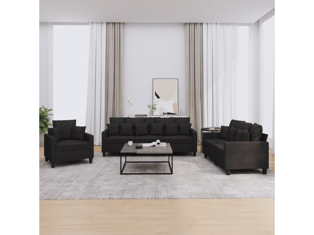 3dílná sedací souprava s polštáři černá textil 3201636