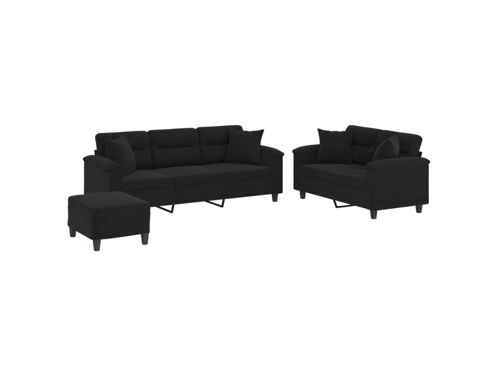 3dílná sedací souprava s polštáři černá tkanina z mikrovlákna 3202359