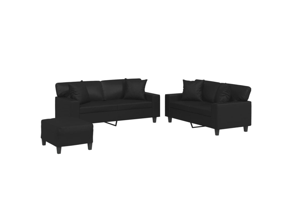 3dílná sedací souprava s polštáři černá umělá kůže 3201929