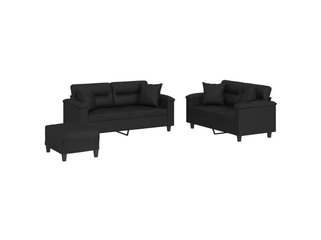 3dílná sedací souprava s polštáři černá umělá kůže 3202377