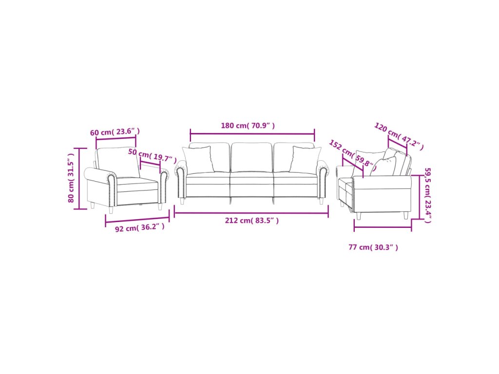 - Celkové rozměry: 212 x 77 x 80 cm (Š x H x V)