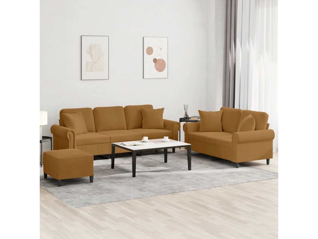 3dílná sedací souprava s polštáři hnědá samet 3202287