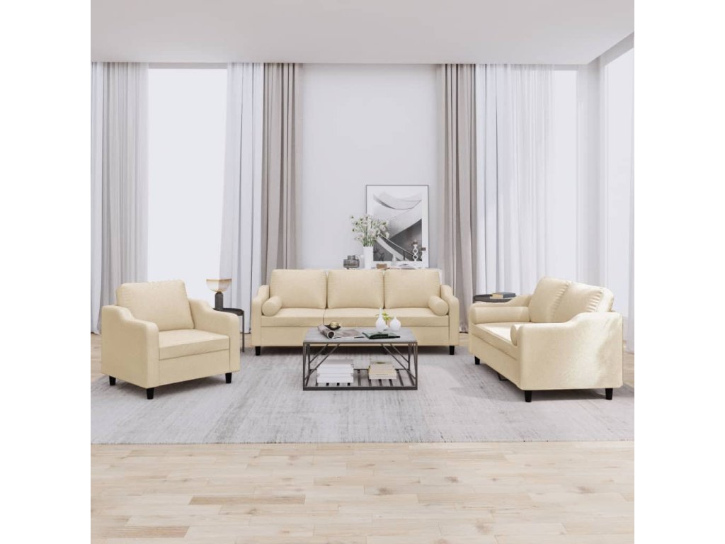 3dílná sedací souprava s polštáři krémová textil 3201788