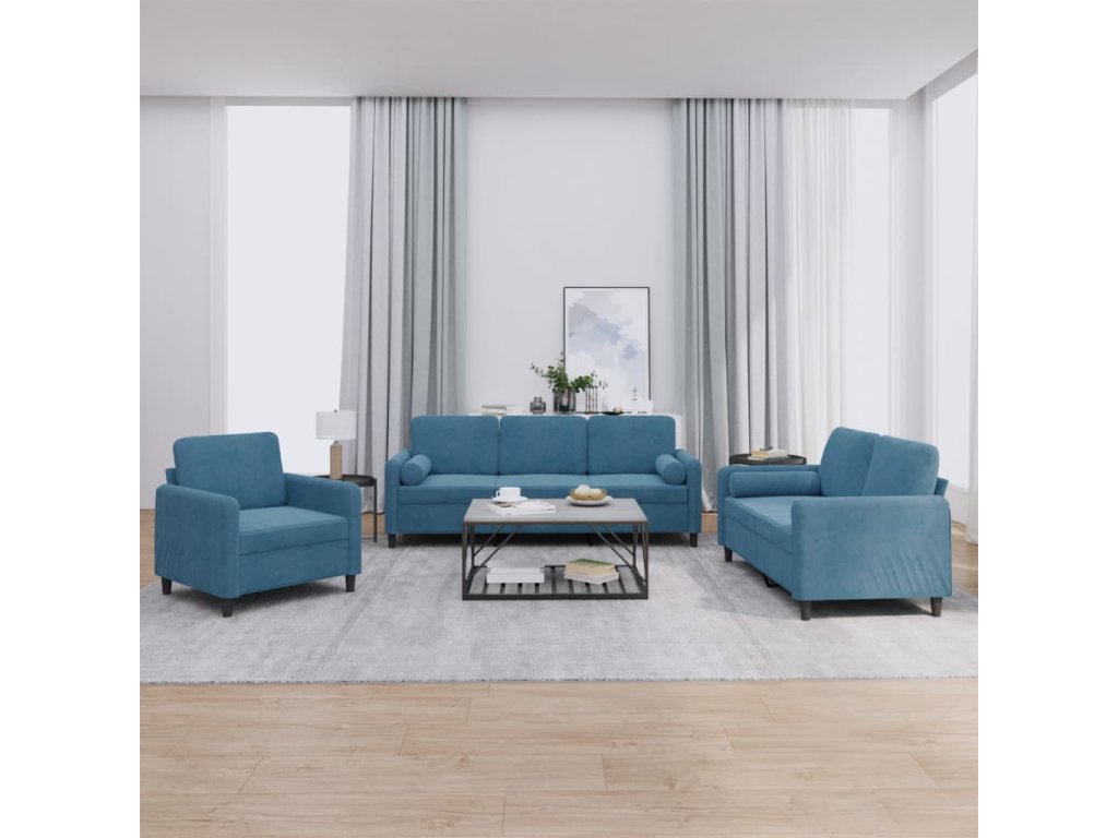 3dílná sedací souprava s polštáři modrá samet 3201963