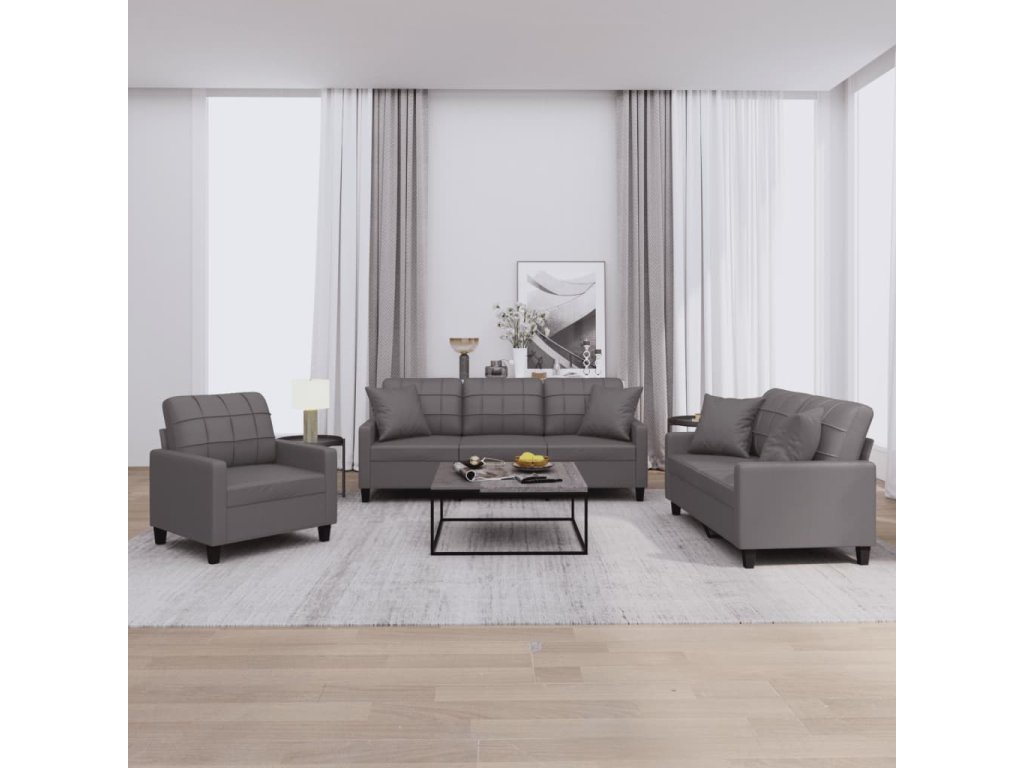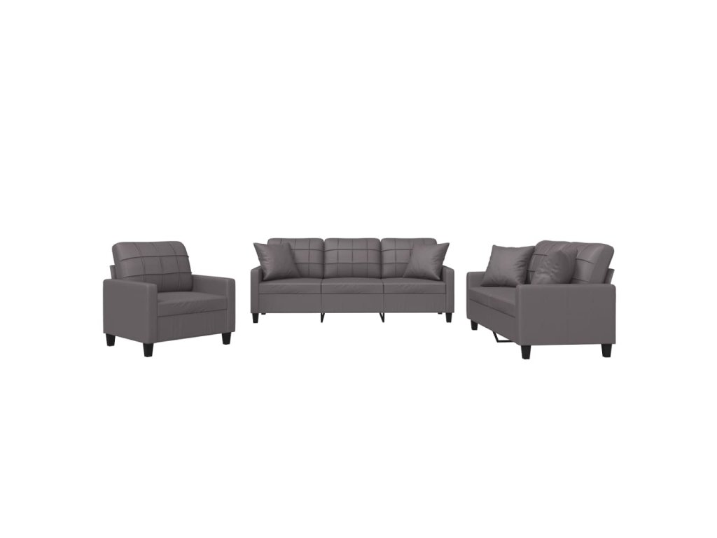 3dílná sedací souprava s polštáři šedá umělá kůže 3201350