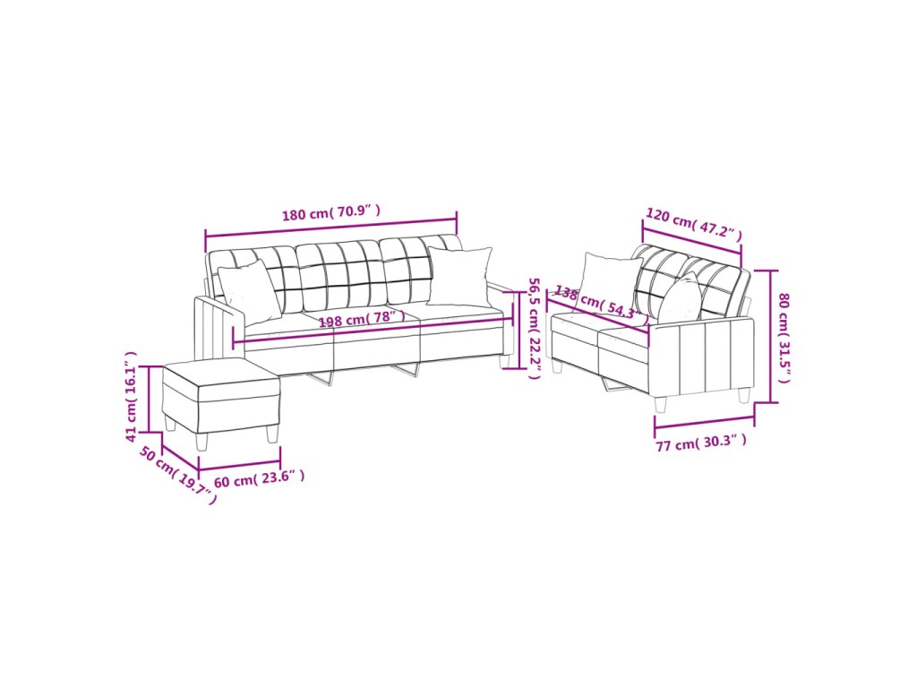 - Celkové rozměry: 198 x 77 x 80 cm (Š x H x V)