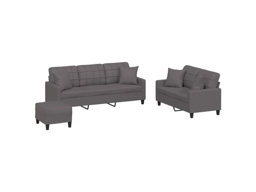 3dílná sedací souprava s polštáři šedá umělá kůže 3201395
