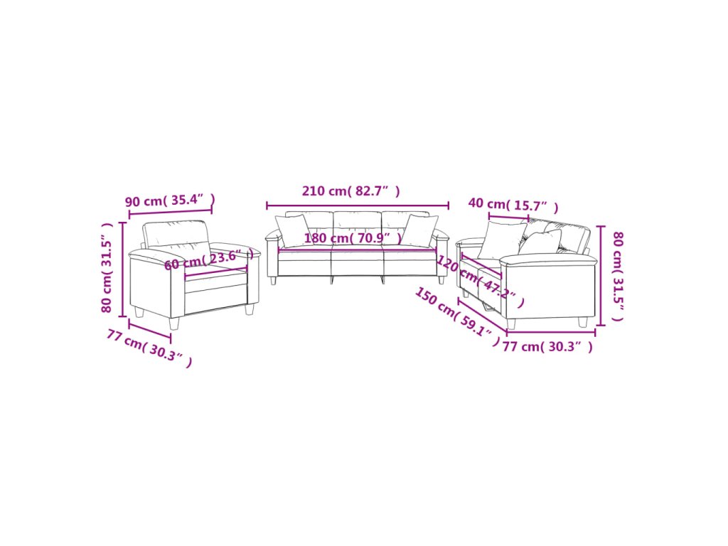 3dílná sedací souprava s polštáři světle šedá mikrovlákno 3202303