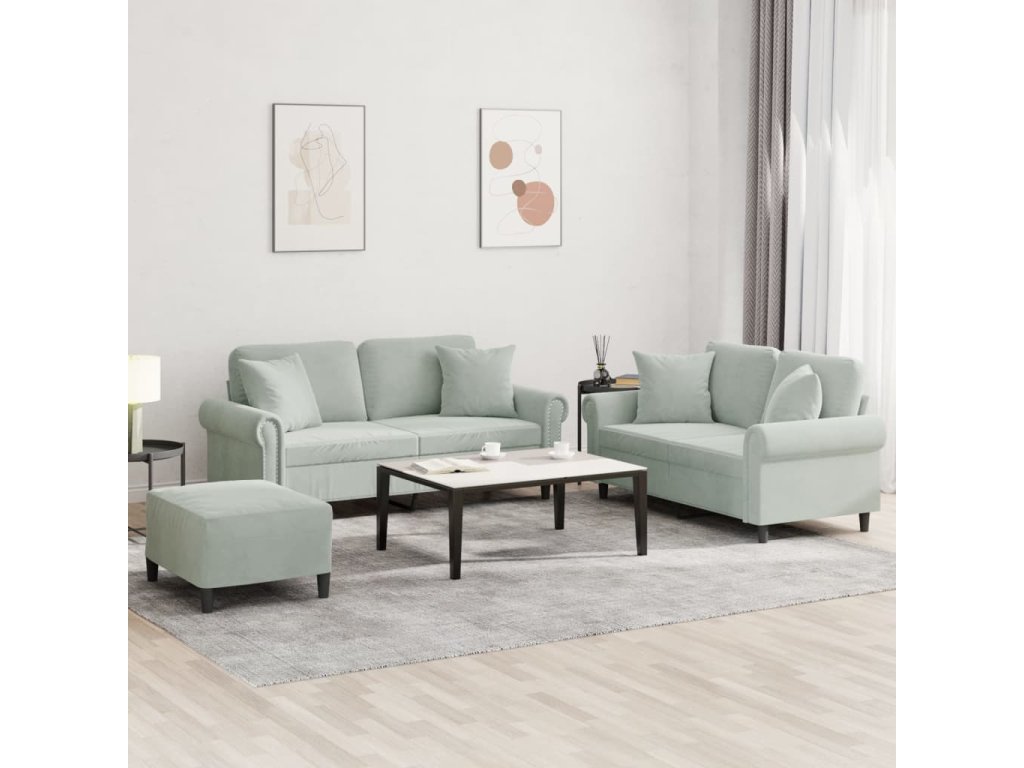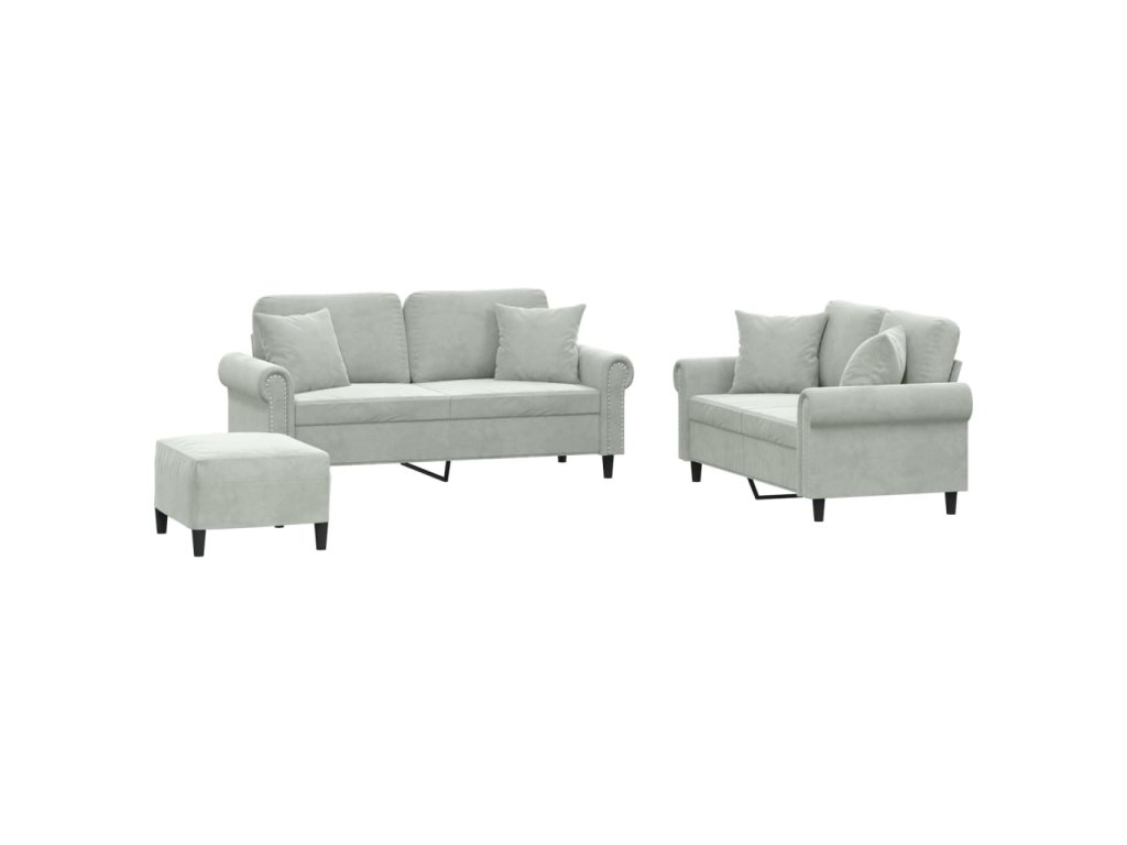 3dílná sedací souprava s polštáři světle šedá samet 3202240
