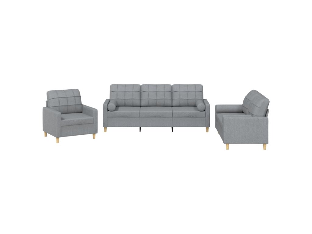 3dílná sedací souprava s polštáři světle šedá textil 3201258