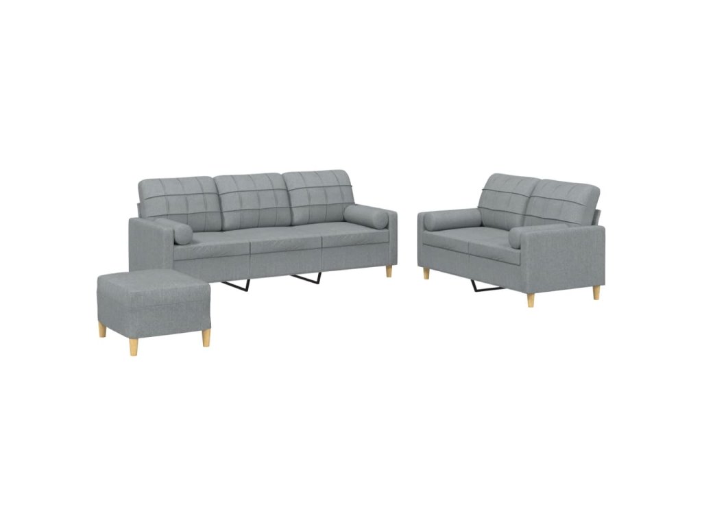 3dílná sedací souprava s polštáři světle šedá textil 3201330
