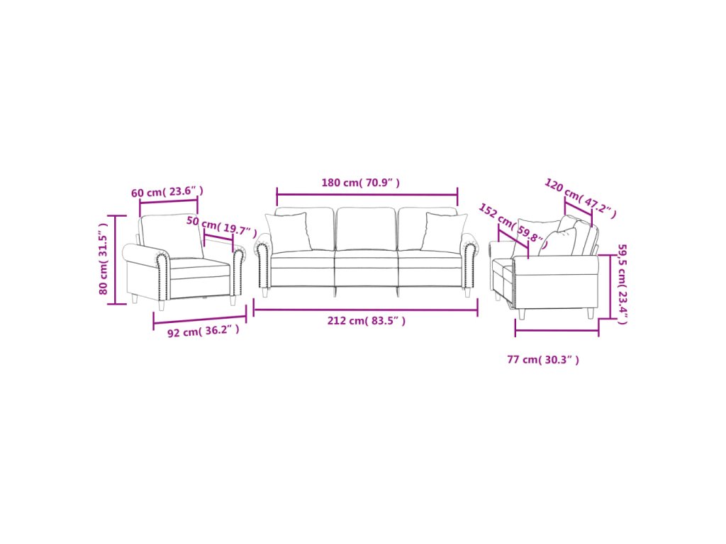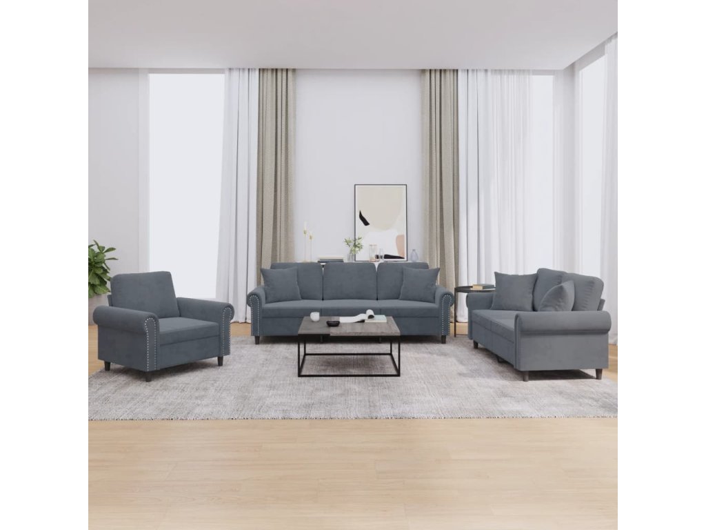 3dílná sedací souprava s polštáři tmavě šedá samet 3202191