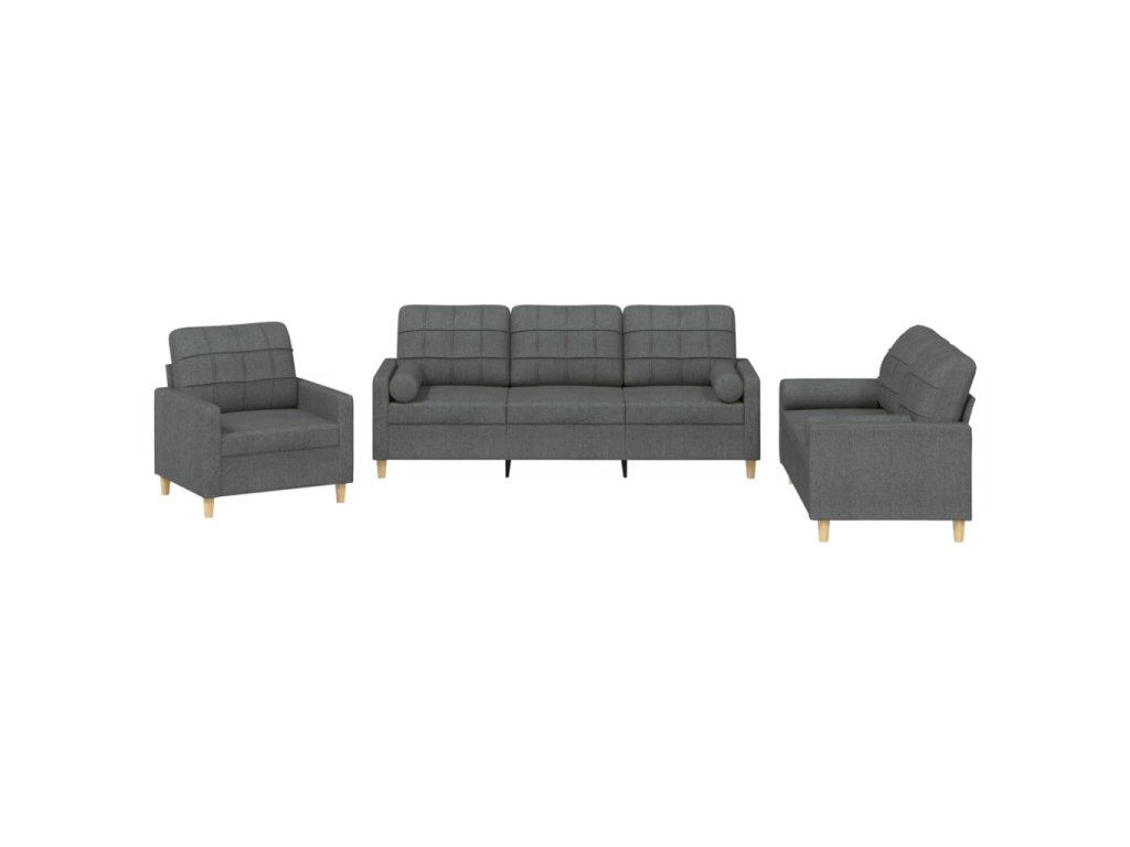 3dílná sedací souprava s polštáři tmavě šedá textil 3201259